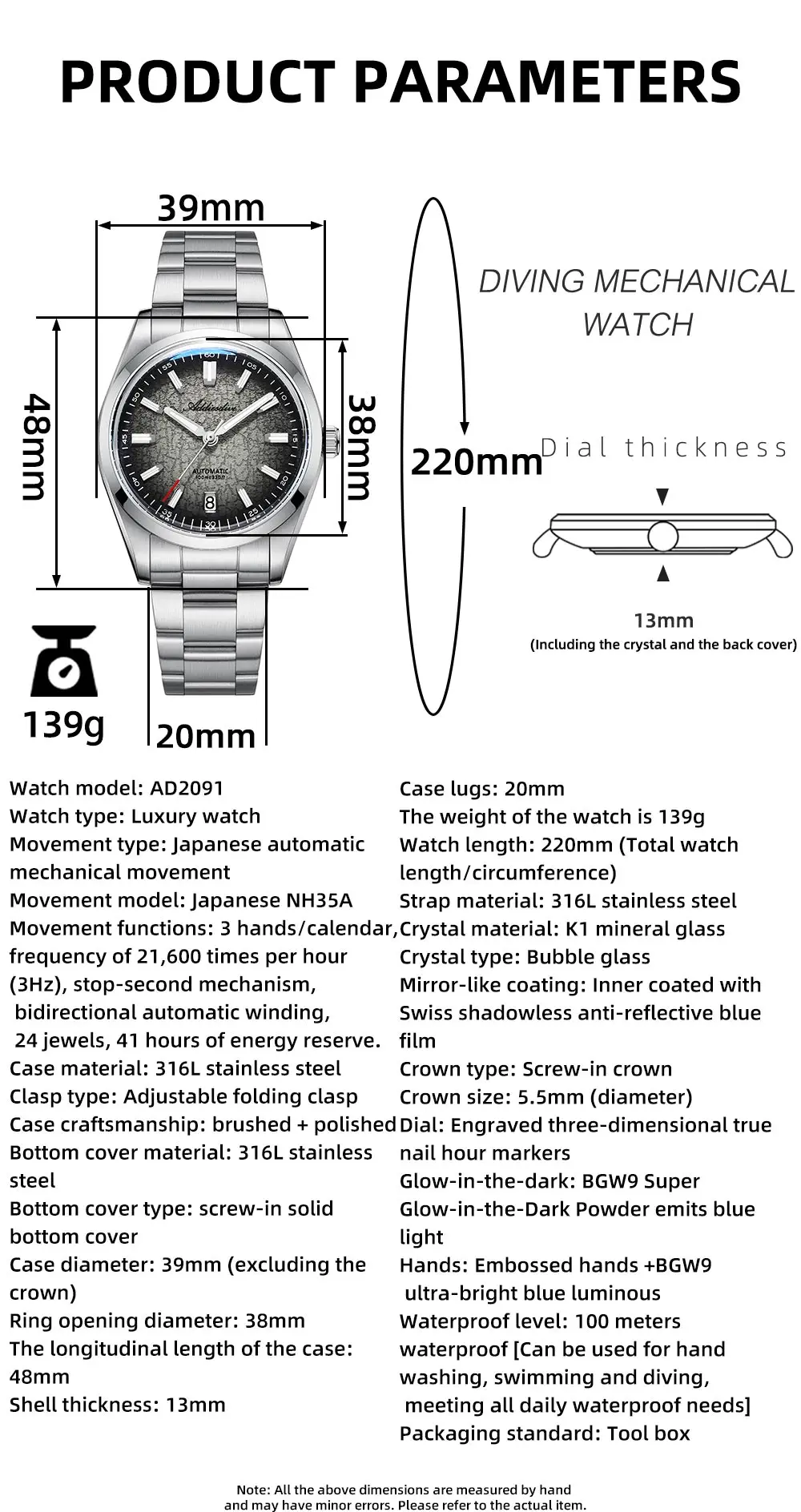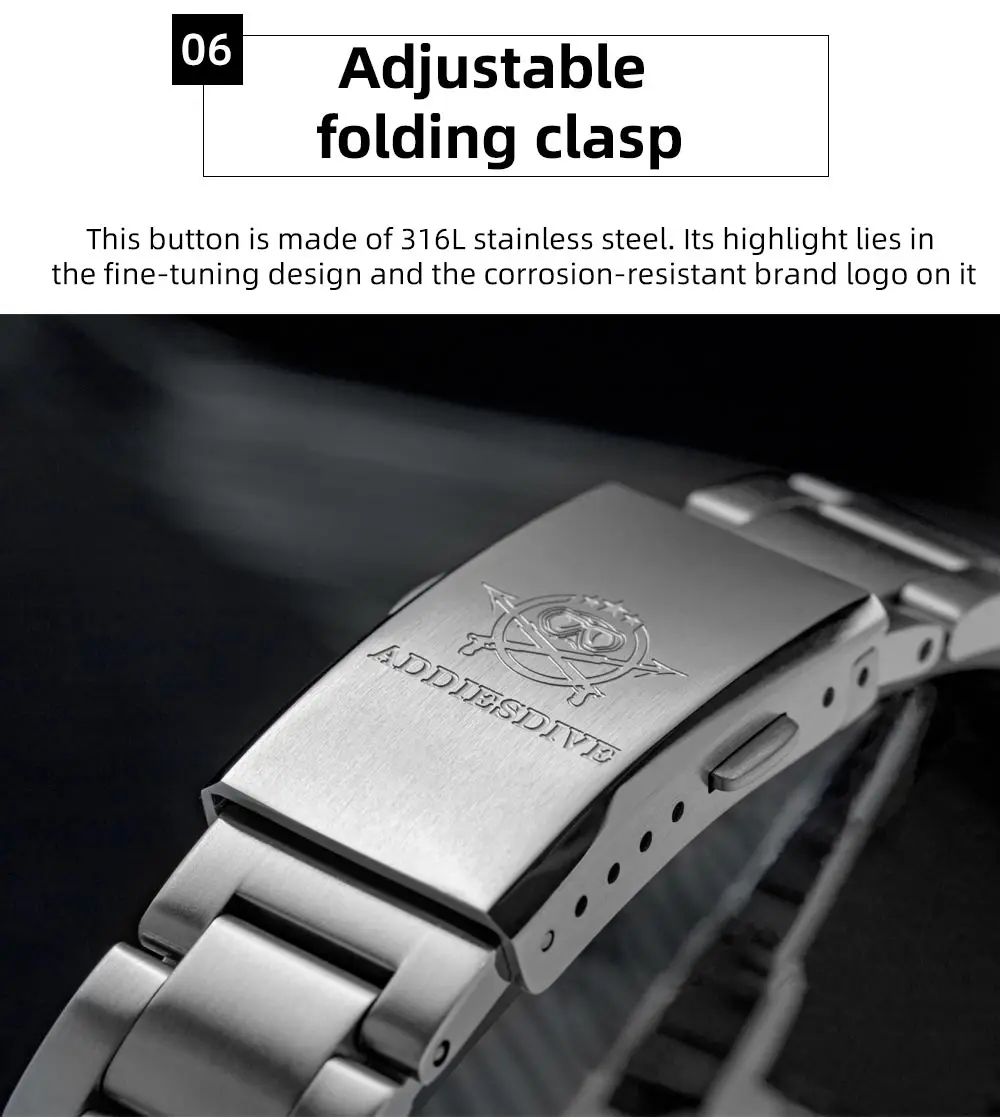 ADDIESDIVE Luxury Automatic Mechanical Watch NH35A Movement 316L Stainless Steel BGW9 Luminous 100M Water Resistant Bubble Glass